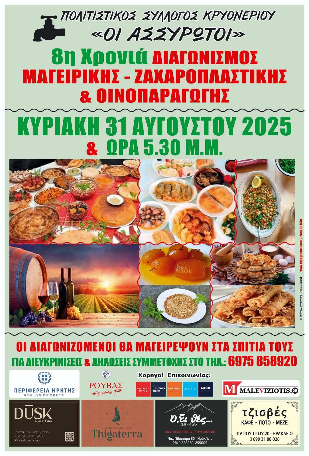 Ο διαγωνισμός φέτος θα διεξαχθεί σήμερα Κυριακή 31 Αυγούστου και ώρα 5:30 το απόγευμα στους χώρους του Πολιτιστικού Συλλόγου του Κρυονερίου και όπως πάντα αναμένεται να έχει πολλές και ενδιαφέρουσες συμμετοχές καθώς επίσης πλήθος επισκεπτών!