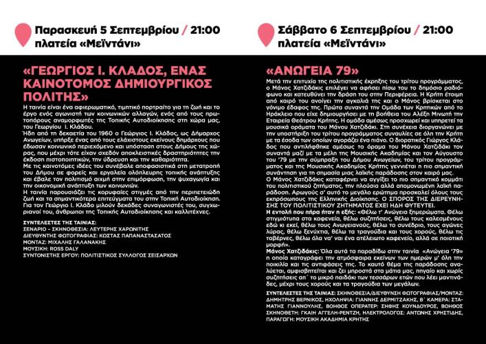 οι Προβολές θα πραγματοποιηθούν την Παρασκευή 5 και το Σάββατο 6 Σεπτεμβρίου στην Πλατεία Μεϊντάνι στις 21:00.