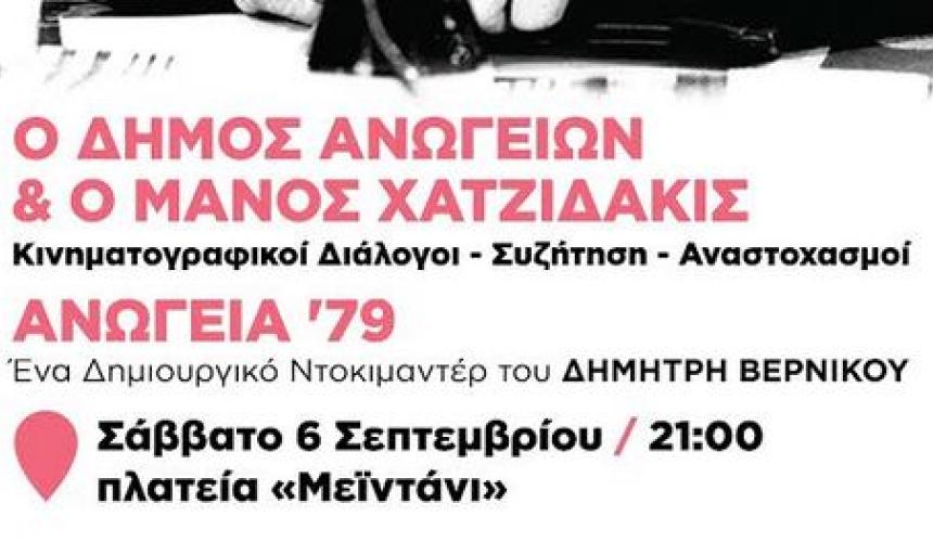 Όλα αυτά τα παραδίδω στην ταινία «Ανώγεια ‘79» η οποία καταγράφει την ατμόσφαιρα εκείνων των ημερών μ’ όλη την ποικιλία και τις αντιφάσεις της. Το καυτό θέμα της παράδοσης αναλύεται, αμφισβητείται και ζει μπροστά στα μάτια μας, πηγαίο και χωρίς συζητήσεις απ΄ το μικρό παιδάκι των τεσσάρων ετών που λέει μαντινάδες, μέχρι τους χορούς και τα τραγούδια των μεγάλων.