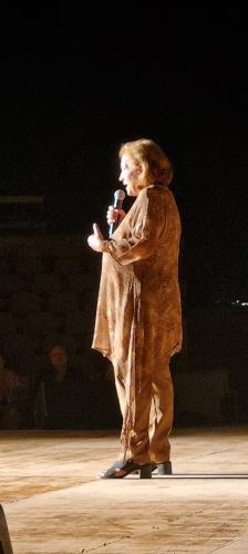 Η δε συγγραφεύς του έργου κ. Ρούλα Ορφανουδάκη που πήρε τον λόγο, αφού ευχαρίστησε όλους όσους συνέβαλαν στη επιτυχή έκβαση της παράστασης, επεσήμανε την αξία του κρητικού ιδιώματος ενώ συνέστησε στους παρόντες να προβάλλουν και να χρησιμοποιούν τα Κρητικά και να μην αφήσουν αυτόν τον γλωσσικό μας θησαυρό να αφανίζετα.