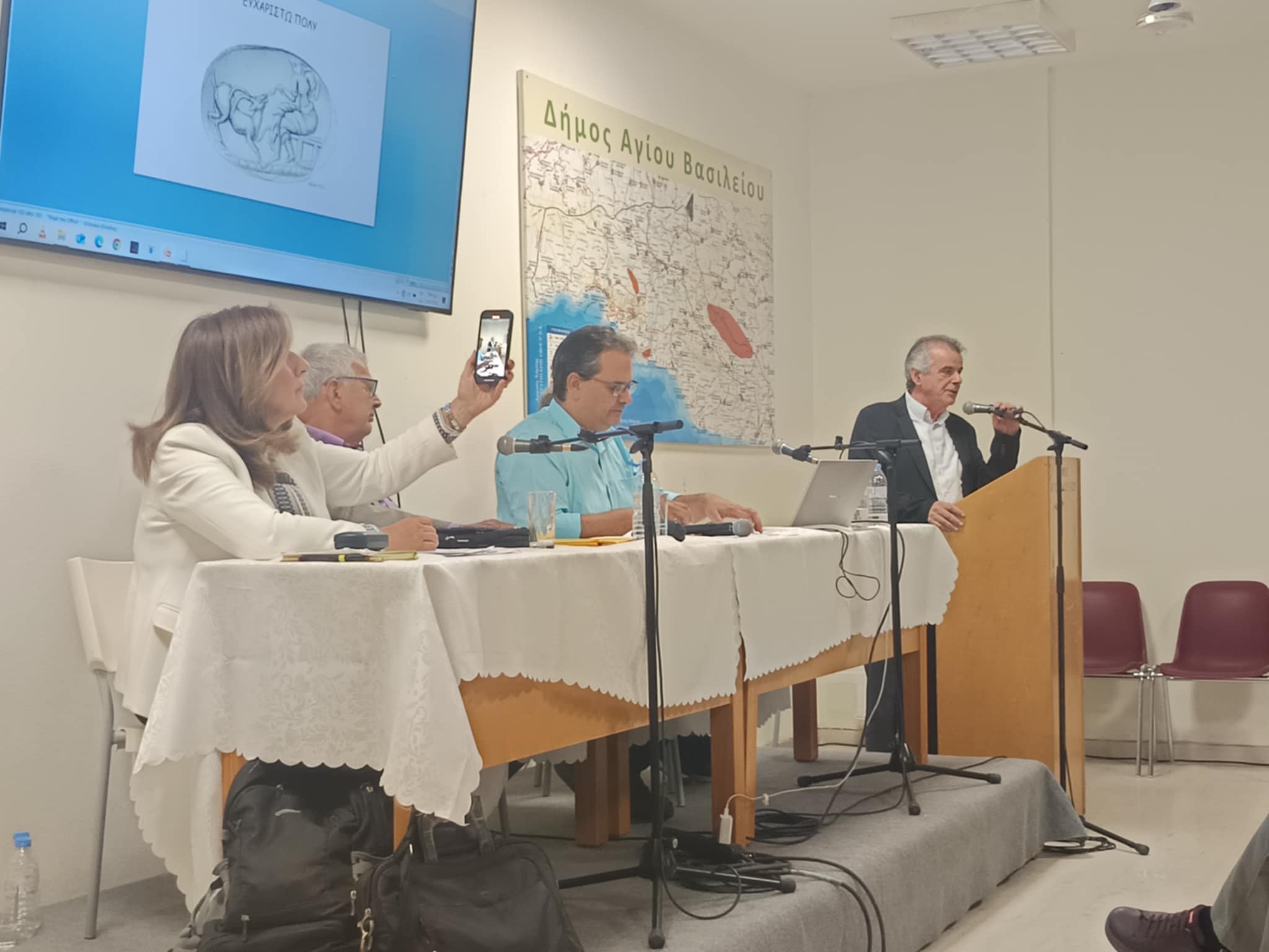 Παρουσία πλήθους κόσμου πραγματοποιήθηκε την περασμένη Τετάρτη με εξαιρετική επιτυχία στην αίθουσα εκδηλώσεων του δημαρχείου στο Σπήλι εσπερίδα την οποία διοργάνωσε ο δήμος Αγίου Βασιλείου με τίτλο «Μινωικός Πολιτισμός, Πρέβελη-UNESCO» σε συνεργασία με την Επιτροπή Πρωτοβουλίας Μινωικού Πολιτισμού – UNESCO με αφορμή την ένταξη των Μινωικών μνημείων στον Κατάλογο Παγκόσμιας Κληρονομιάς της UNESCO. Ένα γεγονός ιστορικής σημασίας, όχι μόνο για την Κρήτη αλλά και για ολόκληρη την Ελλάδα. Η αναγνώριση αυτή επιβεβαιώνει την «Εξέχουσα Οικουμενική Αξία» του Μινωικού Πολιτισμού, ενός πολιτισμού που θεμελίωσε την ιστορία της Ευρώπης.