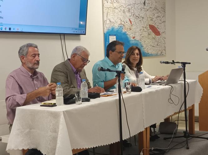 Στη συνέχεια τον λόγο, πήρε η κ. Παναγιώτα Αργίτη, η οποία αναφέρθηκε στα χαρακτηριστικά της Αρχιτεκτονικής των Μινωιτών. Ειδικότερα η κ. Αργίτη επισήμανε ότι ο Αρχιτεκτονικός και ο Πολεοδομικός Σχεδιασμός των Μινωιτών ήταν η βάση για την μετέπειτα εξέλιξη της Ευρωπαϊκής οργανωμένης οικιστικής μονάδας , της Πόλης σε όλο τον δυτικό κόσμο. Στη συνέχεια η κ Αργίτη, αναφέρθηκε στα Κτήρια της Μονής Πρέβελη και για τις δυο θέσεις ( Παλαιό Μοναστήρι και Νέο ), στη θέση τους στην περιοχή, στα επιμέρους διαμερίσματα και τις χρήσεις τους , καθώς και στα χαρακτηριστικά των ναών, τον ρυθμό τους και τα κειμήλια τα οποία φυλάσσονται στο Μουσείο της Μονής.
