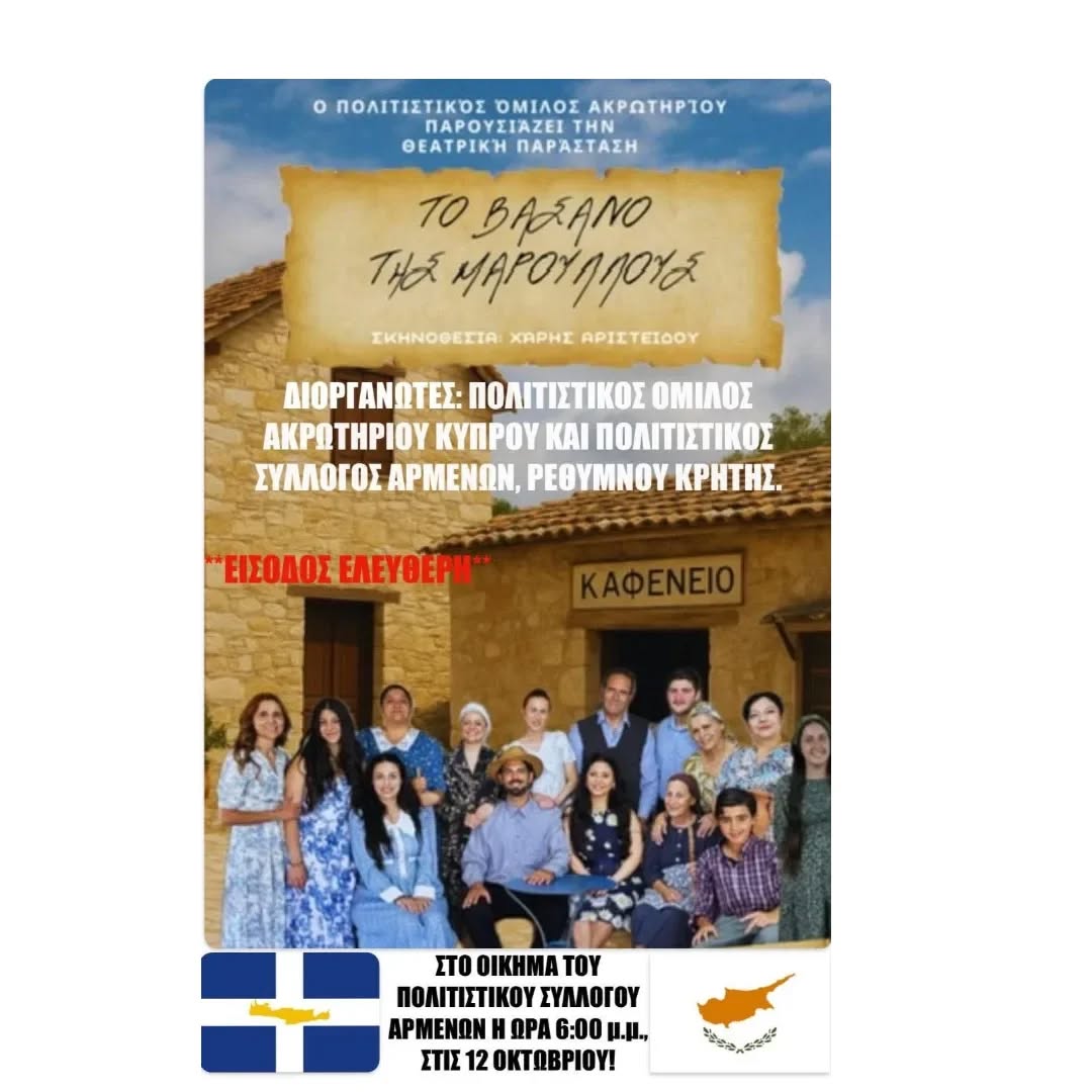 Η παράσταση, γεμάτη κυπριακό χιούμορ και παραδοσιακό χρώμα, υπόσχεται να χαρίσει γέλιο αλλά και συγκίνηση.