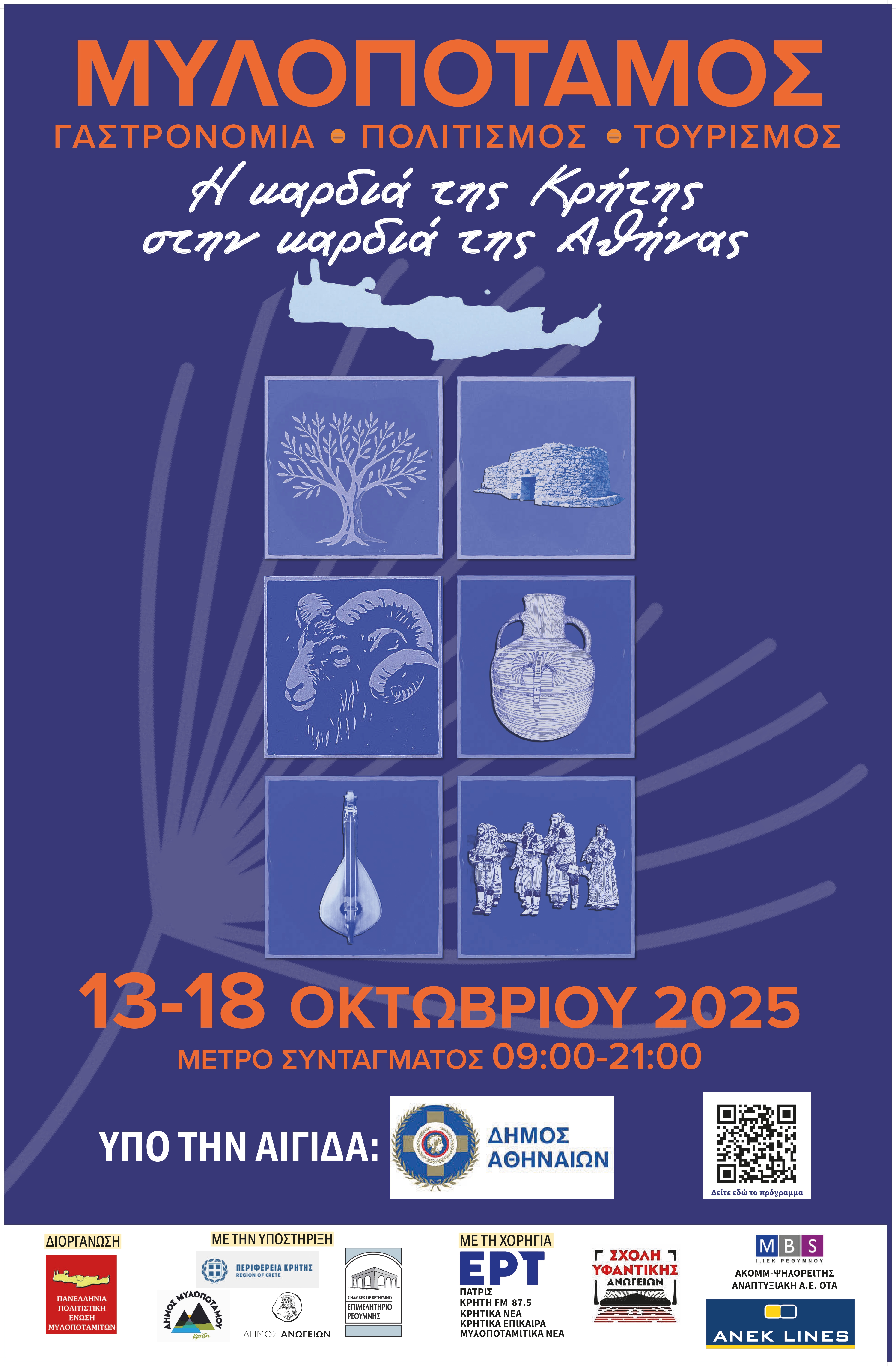 Η εκδήλωση αποτελεί έναν ζωντανό διάλογο ανάμεσα στον πολιτισμό, τη γαστρονομία και τον τουρισμό της Κρήτης. Είναι μια μοναδική ευκαιρία για το κοινό της Αθήνας και τους επισκέπτες της πόλης να γνωρίσουν από κοντά τις γεύσεις, τα αρώματα και τις τέχνες ενός από τους πιο πλούσιους πολιτιστικά τόπους της Ελλάδας – τον Μυλοπόταμο και την Κρήτη.