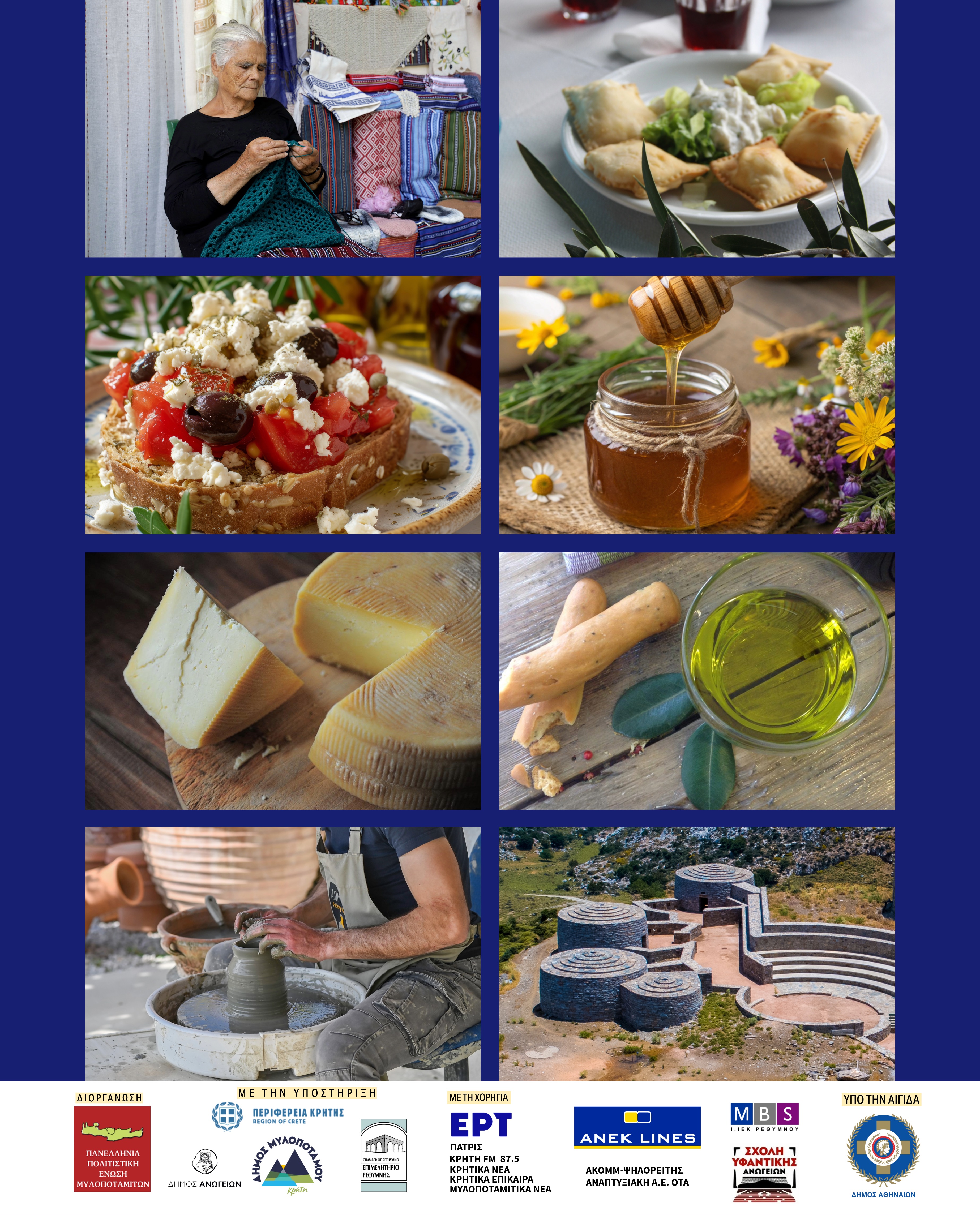 - Παρουσιάσεις Γαστρονομίας και Πολιτισμού: Από τα Μιτάτα στο σήμερα – η ζωντανή παράδοση της Κρητικής διατροφής, «Ταξίδι Αυθεντικών Γεύσεων & Αρωμάτων» (Σάββατο 19:00).