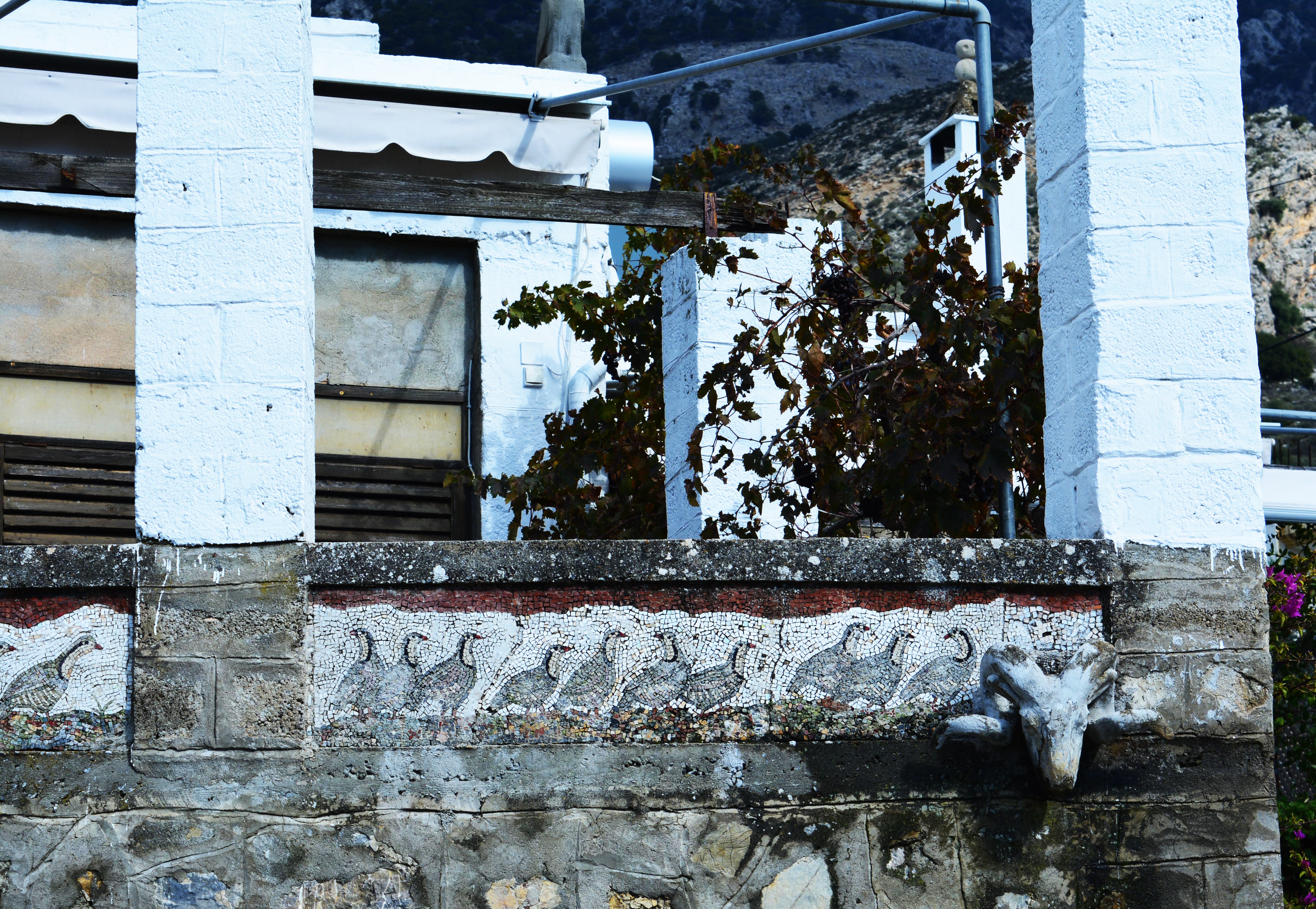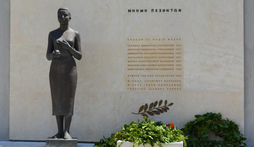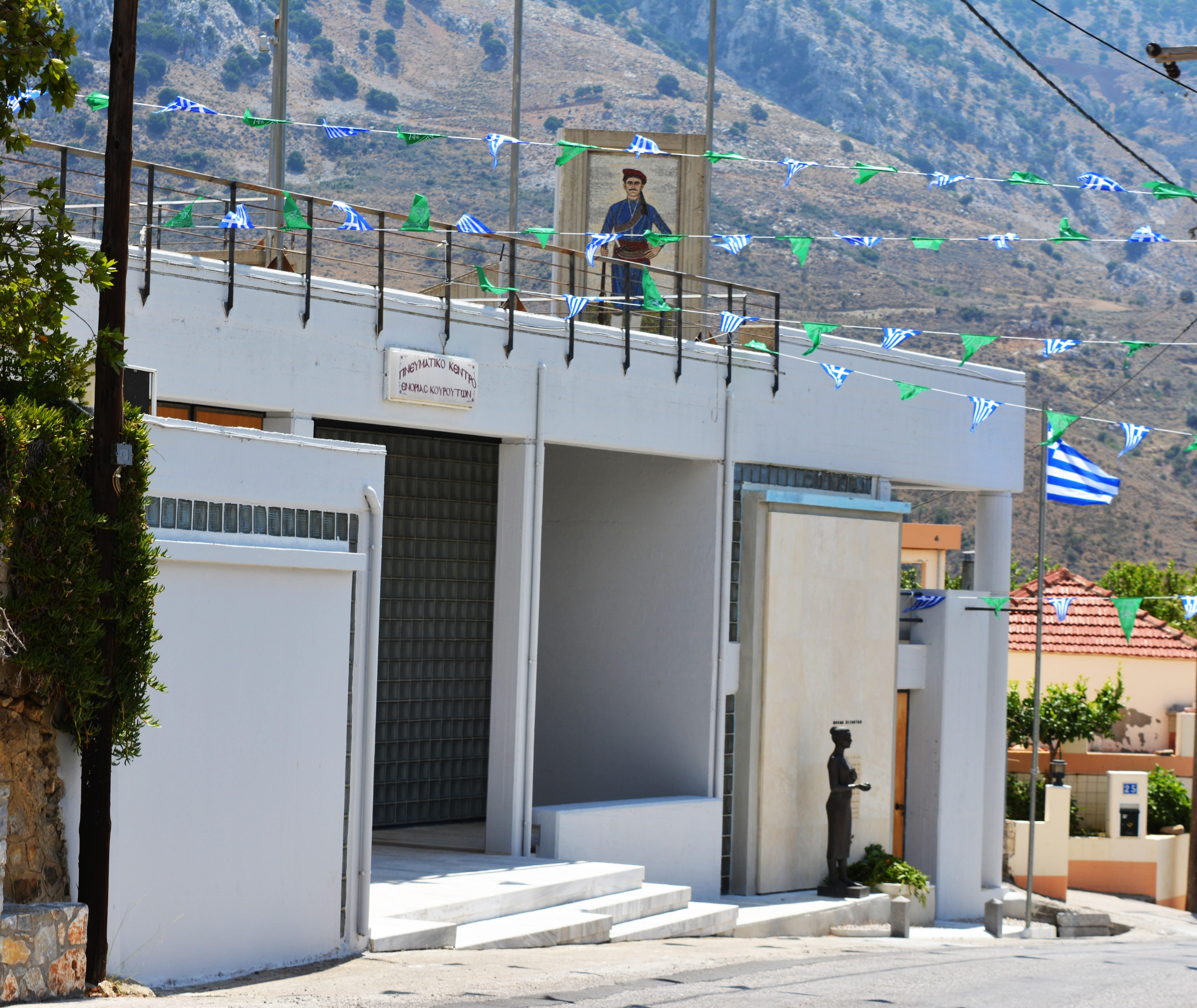 _Θεοδώρα, στην πρόσοψη του Πνευματικού Κέντρου Ενορίας Κουρουτών, συσχετισμένο με το ηρώο πεσόντων.