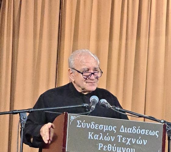 Πραγματοποιήθηκε το βράδυ της Δευτέρας και η ομιλία «Η μνήμη των ενδυμάτων» αποτέλεσε όπως ανέφερε ο ομιλητής «μια εκτενή αναφορά στον πολιτισμό των ενδυμάτων, έτσι όπως αυτά μέσα στην ιστορία των ανθρώπων διευκρίνισαν, μεταξύ πολλών άλλων, τί σημαίνει ομορφιά, ιερότητα και εξουσία. Και φυσικά το ρόλο του πολυκόσμητου λαϊκού ενδύματος μέσα στις περίκλειστες κοινωνίες της παλαιάς Κρήτης, μιας κατά κύριο λόγο γυναικείας κοινωνίας που τα βελόνια της αποτελούσαν τη χλιδή των φτωχών…».
