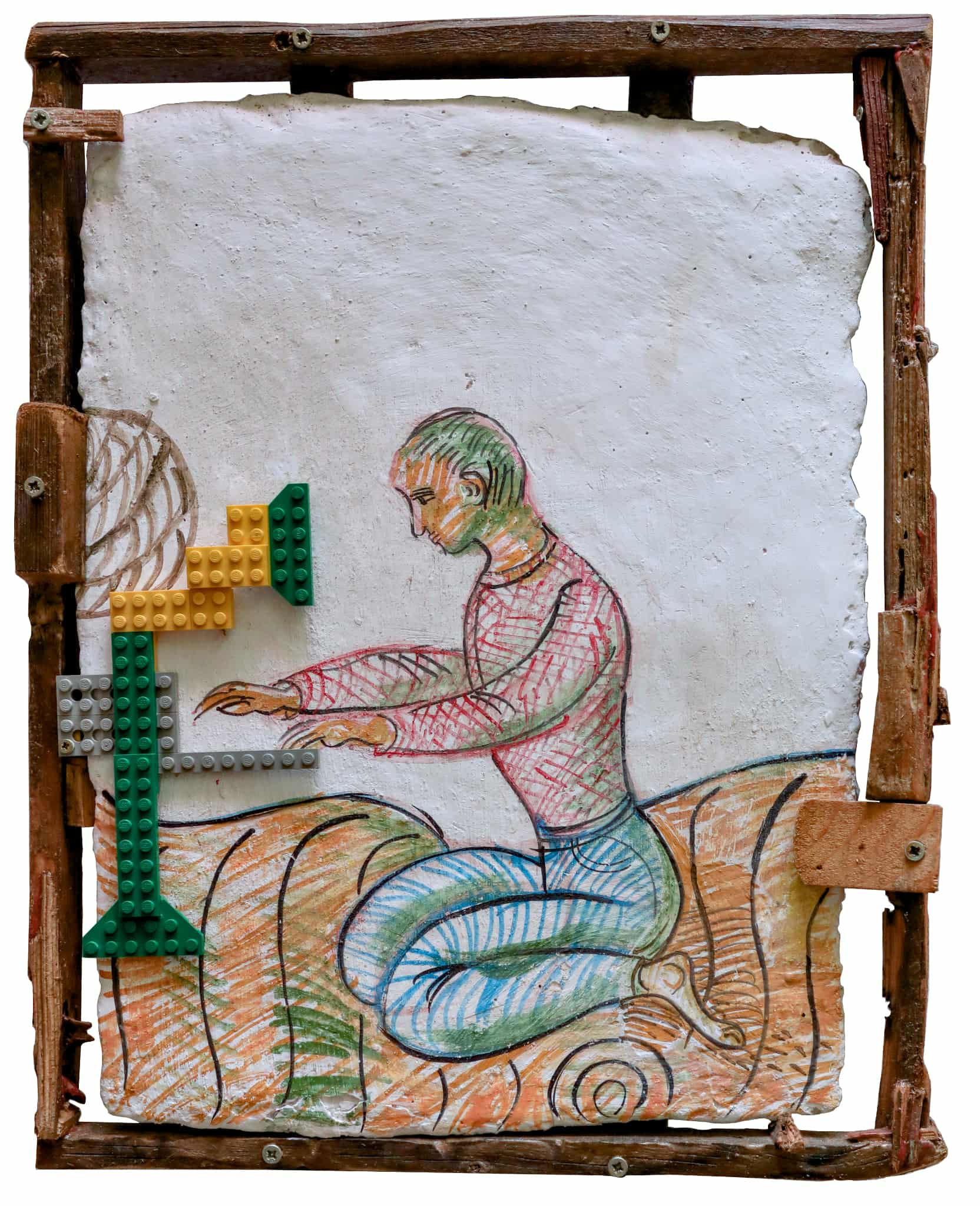 Ο καλλιτέχνης επιθυμεί να τονίσει την ύλη και το απτό των έργων, δίνοντάς τους όγκο και βάρος. Οι πρώτες ύλες είναι το τσιμέντο, το ασβεστοκονίαμα, αλλά και κλαδιά, καλάμια και ξύλα που περισυλλέχθηκαν σε χωράφια και παραλίες της περιοχής. Οι τεχνικές είναι διαφορετικές: νωπογραφία, ύφανση, συναρμογή, σκόνες χρωμάτων, κόλλες κ.ά. Τα θέματα παρουσιάζουν επίσης ποικιλία: μνήμες, μύθοι, αστερισμοί, εικόνες της καθημερινότητας, αναφορές και σχόλια σε βιβλία και στην ιστορία της τέχνης.