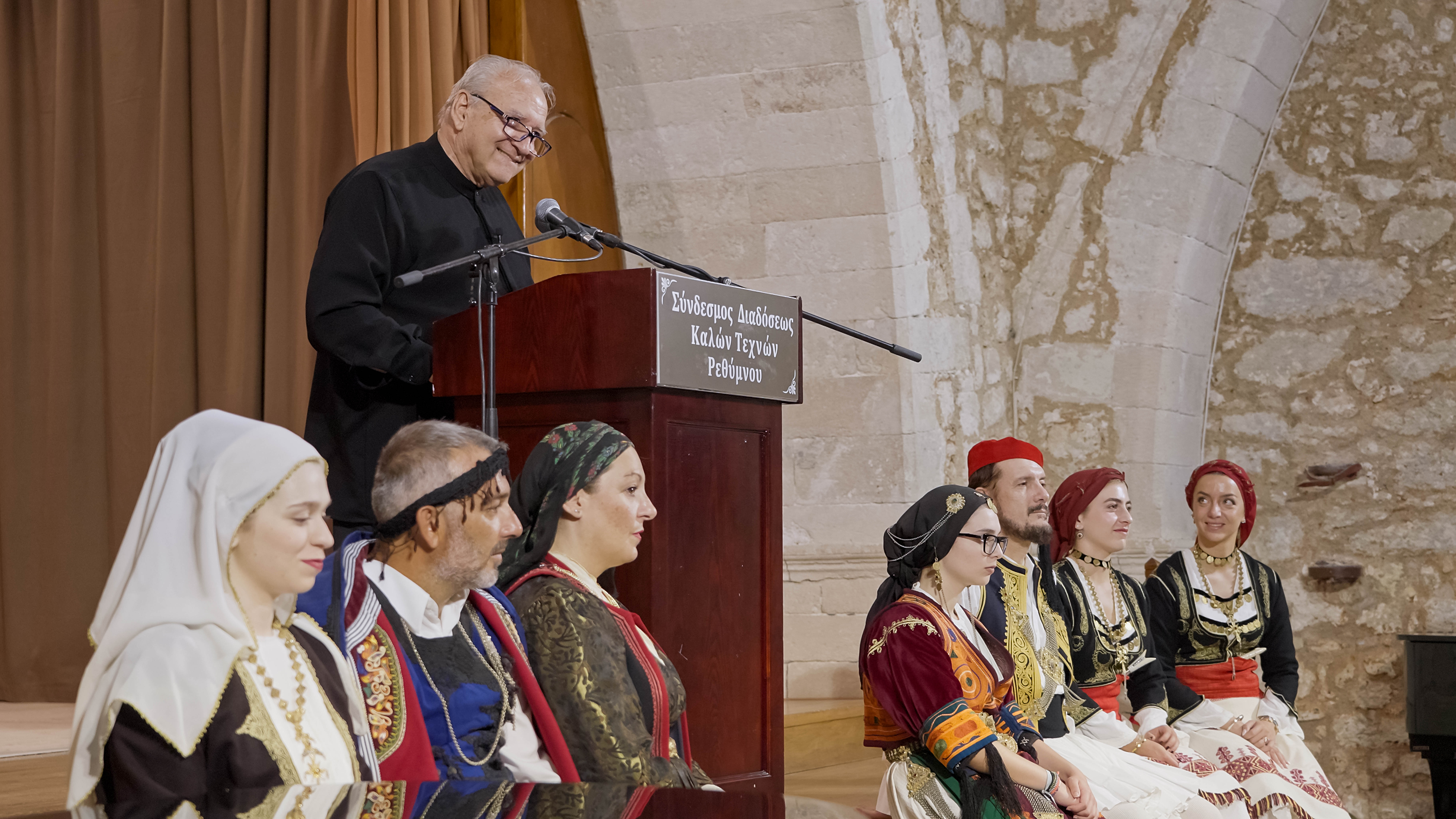 Ο σπουδαίος σκηνογράφος παρουσίασε μια ξεχωριστή ομιλία για την πολιτισμική ταυτότητα της ενδυμασίας, σε εκδήλωση του Λαογραφικού Μουσείου Ρεθύμνου