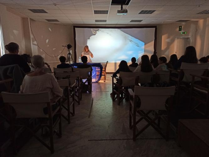 Την Πέμπτη 23/10/2025, τα μέλη του Κινηματογραφικού Ομίλου του Πειραματικού Γυμνασίου Ρεθύμνου Παν/μίου Κρήτης μαζί με τους υπεύθυνους εκπαιδευτικούς Αρσένη Αρσενάκη και Ειρήνη Ρενιέρη, επισκέφθηκαν για 5η συνεχή χρονιά το Φεστιβάλ Κινηματογράφου Χανίων και παρακολούθησαν το εργαστήριο κινηματογραφικού γραμματισμού, που εμψύχωσε η σκηνοθέτιδα Ιρίνα Μπόικο, με τίτλο «Πες την ιστορία με άμμο!", στο πλαίσιο των εκπαιδευτικών δράσεων του 13ου Φεστιβάλ. Οι μαθητές/-τριες είχαν την ευκαιρία αφού συζήτησαν για τα βασικά στοιχεία του σεναρίου και τις διαφορές ντοκιμαντέρ -μυθοπλασίας, να δουν πώς μπορεί να εικονοποιηθεί μια ιστορία με μόνα στοιχεία τον φωτισμό και τη χρήση θαλάσσιας άμμου επάνω σε διάφανη επιφάνεια. Μπροστά στα μάτια τους, σχηματίζονταν "δακτυλουργικά", χάρη στα μαγικά χέρια της κ. Μπόικο, εφήμερες ιστορίες! Στη συνέχεια, αφού όλοι ασκήθηκαν στον τρόπο διαχείρισης της άμμου επάνω στη φωτισμένη επιφάνεια, χωρίστηκαν σε ομάδες, σχεδίασαν στο χαρτί τη δική τους ιστορία και στη συνέχεια την παρουσίασαν με την τέχνη της Sand Art, συνοδεία μουσικής και αφήγησης.