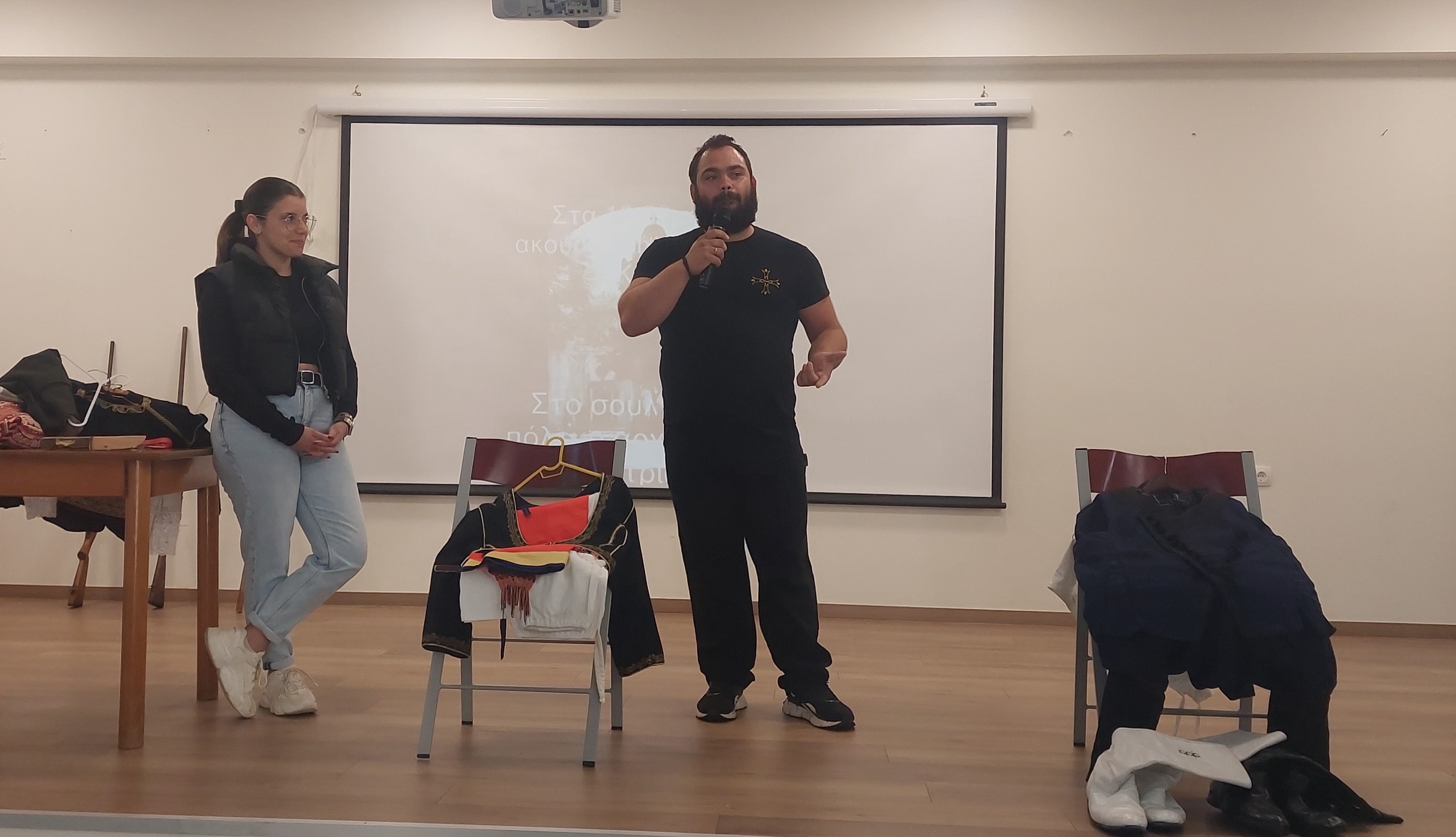 Ο κ. Νικηφόρος, μαζί με την κ. Μαρία, παρουσίασαν στους μαθητές στοιχεία της πλούσιας κρητικής παράδοσης, μιλώντας για την κρητική φορεσιά, τα χαρακτηριστικά της και τα συμβολικά της στοιχεία.
