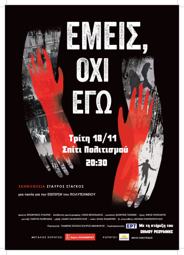 Με αφορμή την επέτειο της 17ης Νοεμβρίου και με τη στήριξη του Δήμου Ρεθύμνης, σας προσκαλούμε στο Σπίτι του Πολιτισμού, στην προβολή του πολυβραβευμένου ντοκιμαντέρ «ΕΜΕΙΣ, ΟΧΙ ΕΓΩ», την Τρίτη 18 Νοεμβρίου 2025, στις 20:30.