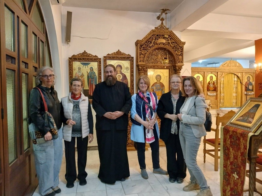 Ο Σ.Ο.Φ.Ψ.Υ. Ρεθύμνου ευχαριστεί επίσης τον εφημέριο της ενορίας του Ιερού Ναού της Παναγίας της Ελευθερώτριας, στην Άνω Καλλιθέα, Αιδεσιμότατο Πρωτοπρεσβύτερο Γεώργιο Γαλεράκη καθώς ο επόμενος περίπατος της Ομάδας «Περπατώ, περπατώ εις την πόλη» είχε προορισμό το χώρο της εν λόγω εκκλησίας. Φτάνοντας στο χώρο μας υποδέχτηκε ο εφημέριος της. Μας μίλησε με τον μοναδικό του τρόπο, για τη συμπλήρωση των 20 ετών από τη θεμελίωση του Ιερού Ναού για την Ιερά Εικόνα της Θεοτόκου της Δεομένης, του έτους 1811, εκ Μικράς Ασίας, κειμήλιο της δωρήτριας του οικοπέδου και για την ιστορία άλλων εικόνων και ιερών κειμηλίων που βρίσκονται εκεί. Στη συνέχεια μεταφερθήκαμε σε χώρο δίπλα στον Ναό όπου λαμβάνουν χώρα εξαιρετικές δράσεις υποστηρικτικές του έργου που επιτελείται εκεί, με την πρωτοβουλία του εφημέριου αλλά και ανθρώπων της ενορίας. Τέλος, ευχαριστούμε και τις κυρίες της ενορίας για τη φιλοξενία τους με χειροποίητα εδέσματα.