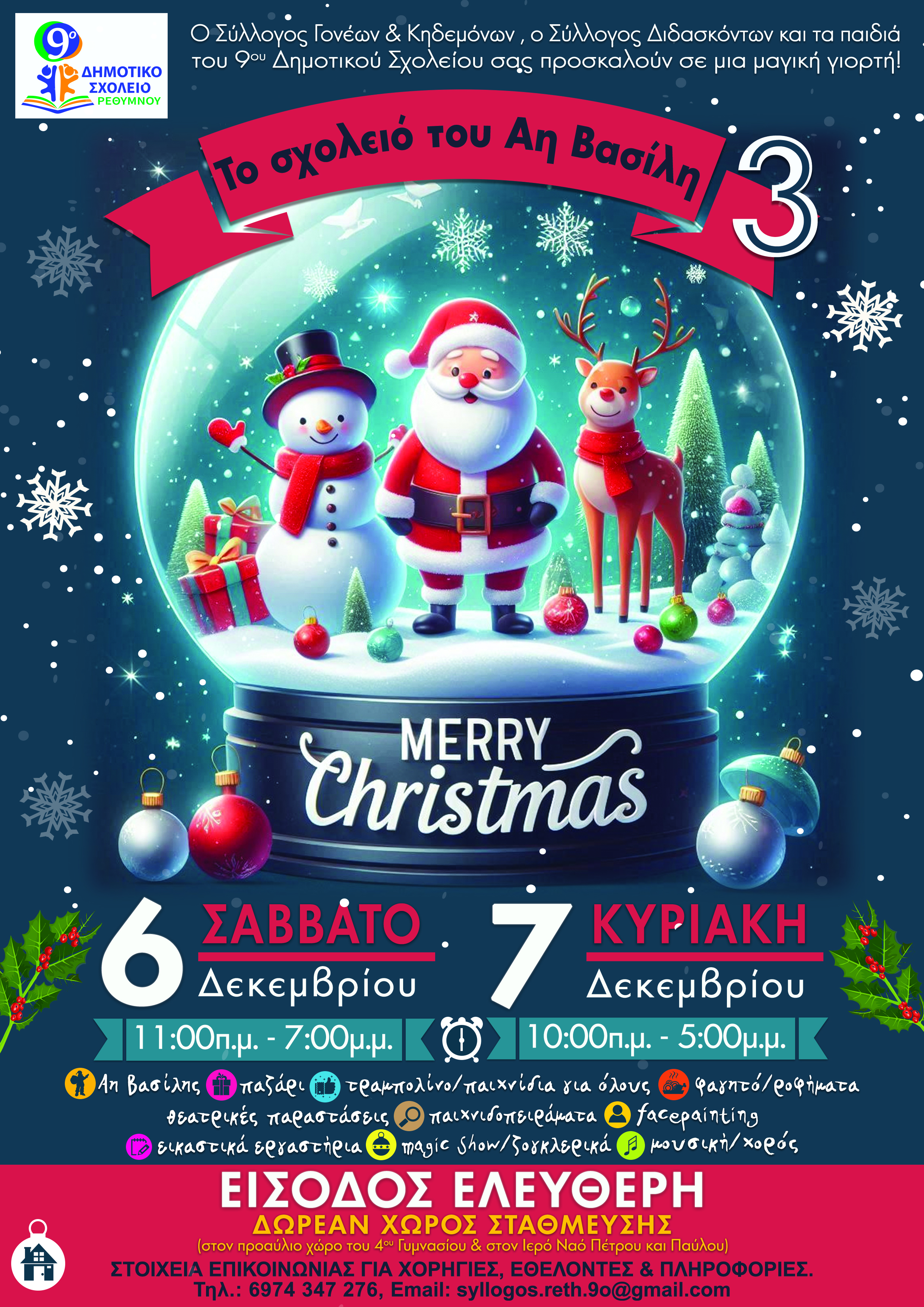 Το "σχολειό του Αη Βασίλη" 3 έρχεται το Σάββατο 6 και την Κυριακή 7 Δεκεμβρίου!