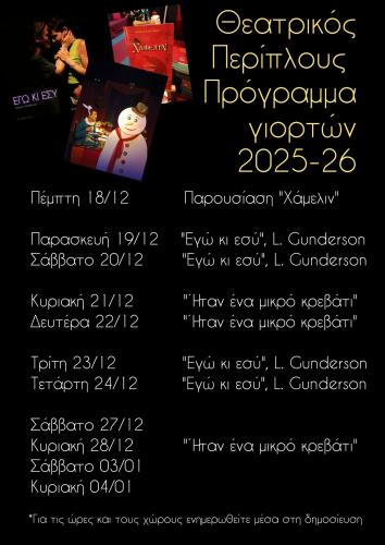 Παρακαλείται το κοινό να κλείσει άμεσα τις θέσεις του για την καλύτερη εξυπηρέτησή του, ιδίως για την παράσταση της Παραμονής των Χριστουγέννων.