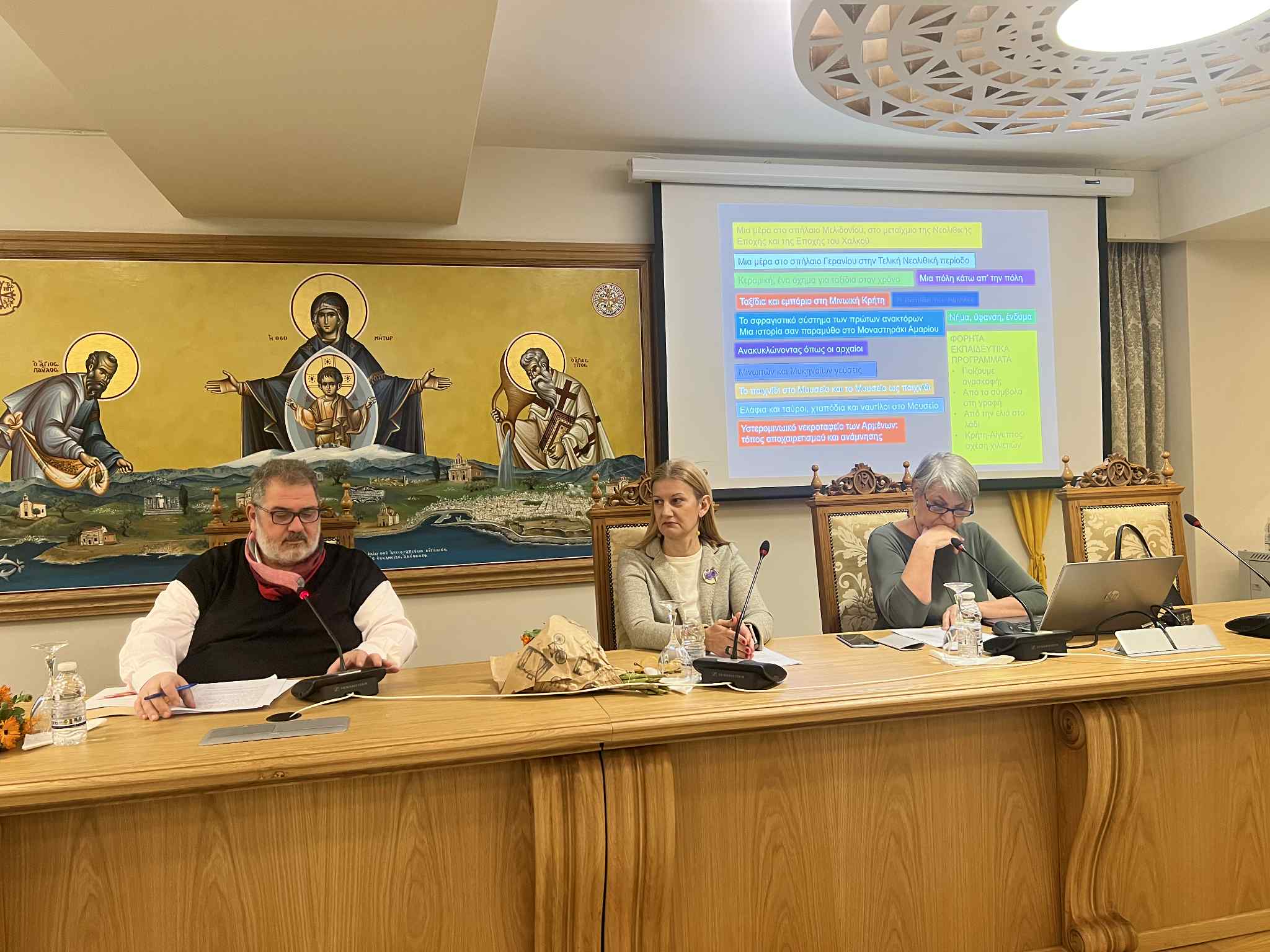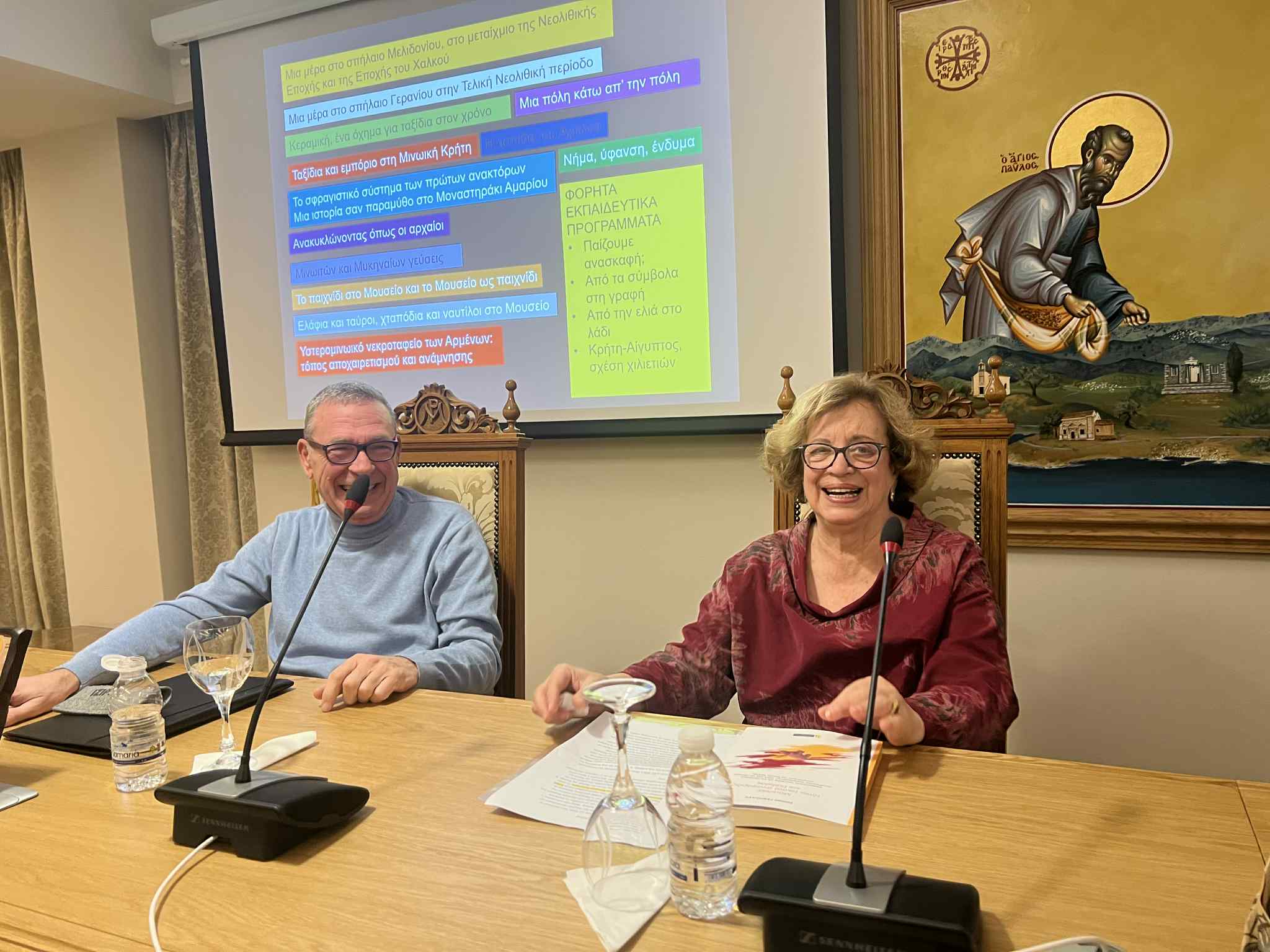 Η εκδήλωση έγινε στο Κέντρο Κοινωνικής και Πολιτισμικής Διακονίας «Θεομήτωρ» το βράδυ της π. Πέμπτης υπό την αιγίδα της Ιστορικής και Λαογραφικής Εταιρείας Ρεθύμνου και με την ευγενική υποστήριξη της Ι. Μ. Ρεθύμνης και Αυλοποτάμου.