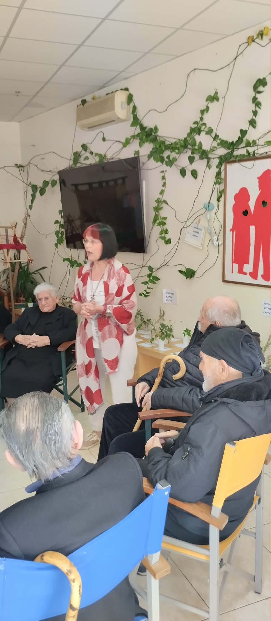 Όμως η συνάντηση, η καταγραφή , η ταξινόμηση των βοτάνων δεν τελειωσε εδώ. Η χορωδία του ΚΑΠΗ άρχισε το τραγούδι που αναφερότανε στα βότανα Αυθόρμητα οι ωφελούμενοι του ΚΗΦΗ ακολούθησαν ενθυμούμενοι σχετικά παλιά τραγούδια με την βοήθεια του θεατρολόγου κ. Λιοδάκη.