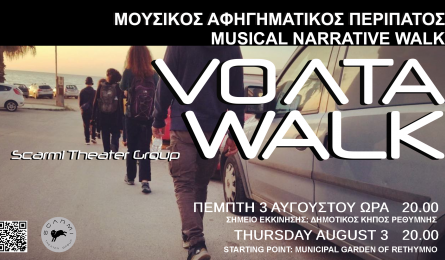 Volta: Ένας μουσικός αφηγηματικός περίπατος στο Ρέθυμνο Ο μουσικός αφηγηματικός περίπατος VΟΛΤΑ,συνεχίζεται και τον Αύγουστο σε επιλεγμένα σημεία της πόλης. Μια μουσική αφηγηματική δράση μέσω της... 31.07.2023 09:08