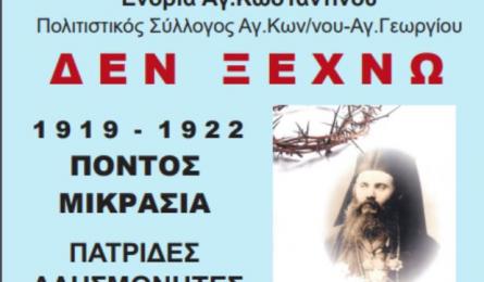 Ρέθυμνο: Εκδήλωση για τις αλησμόνητες πατρίδες «1919-1922: Πόντος-Μικρά Ασία» Η εκδήλωση θα πραγματοποιηθεί στην πλατεία της κοινότητας του Αγίου Κωνσταντίνου ενώ θα ακολουθήσει συναυλία Η Ιερά Μητρόπολη Ρεθύμνης και... 27.06.2023 18:02