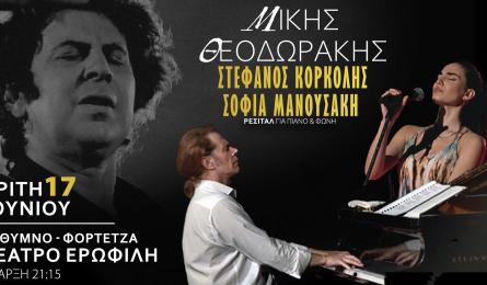 Στέφανος Κορκολής και Σοφία Μανουσάκη σε έργα Μίκη Θεοδωράκη στο Θέατρο Ερωφίλη - Φορτέτζα Τα τελευταία χρόνια της ζωής του, ο Μίκης είχε εμπιστευτεί στον Στέφανο Κορκολή το «νέο του ξεκίνημα» αποκαλώντας τον δημόσια «ιδανικό... 19.05.2025 10:05