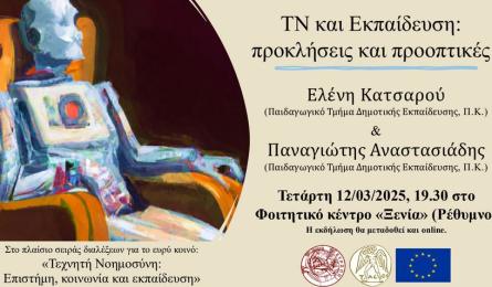 Την Πέμπτη, 13 Μάρτη 2025, ώρα 19.00, στην αίθουσα εκδηλώσεων του Ξενία, το Τμήμα Κοινωνιολογίας του Πανεπιστημίου Κρήτης σας προσκαλεί σε στην...