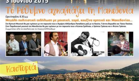 "To Ρέθυμνο αγκαλιάζει τη Μακεδονία" "To Ρέθυμνο αγκαλιάζει τη Μακεδονία" Μεγάλη πολιτιστική εκδήλωση στο 16ο Δημοτικό Σχολείο Ρεθύμνου στις 3 Ιουνίου, με μουσική, χορό, κουζίνα Κρήτης... 27.05.2015 11:19