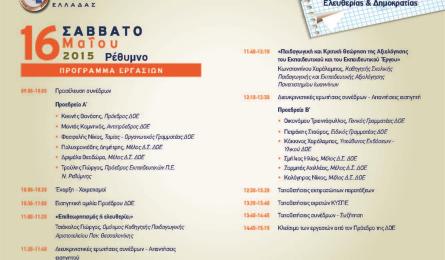 Εκδήλωση για την αξιολόγηση του εκπαιδευτικού έργου Το Δ.Σ. της Δ.Ο.Ε. σε συνεργασία με το Σύλλογο Εκπαιδευτικών Πρωτοβάθμιας Εκπαίδευσης Ν. Ρεθύμνης, θα πραγματοποιήσουν το Σάββατο 16 Μαΐου 2015 και... 14.05.2015 07:45