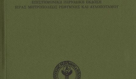 Κυκλοφόρησε το νέο τεύχος της Νέας Χριστιανικής Κρήτης Εκδόθηκε και κυκλοφορήθηκε αυτές τις ημέρες το Γ΄ τεῦχος της Γ΄ Περιόδου της επιστημονικής περιοδικής εκδόσεως της Ιεράς Μητροπόλεως Ρεθύμνης και... 05.05.2015 09:24