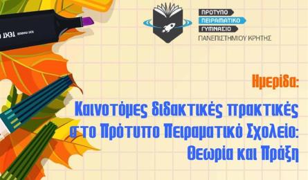 Επιστημονική Ημερίδα - Καινοτόμες διδακτικές πρακτικές στο Πειραματικό Σχολείο: Θεωρία και Πράξη Καινοτόμες διδακτικές πρακτικές στο Πειραματικό Σχολείο: Θεωρία και Πράξη Πρότυπο Πειραματικό Γυμνάσιο Πανεπιστημίου Κρήτης σε συνεργασία με... 03.03.2015 07:00