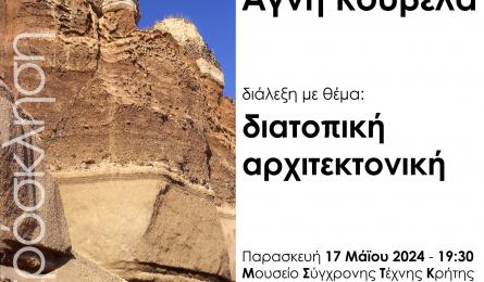 Αρχιτεκτονική διάλεξη της Αγνής Κουβελά στο Ρέθυμνο Αρχιτεκτονική διάλεξη του Συλλόγου Αρχιτεκτόνων Ρεθύμνου με θέμα ‘Διατοπική Αρχιτεκτονική’ και εισηγήτρια την αρχιτεκτόνισσα Αγνή Κουβελά, την... 13.05.2024 20:09