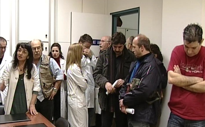Σκηνές απείρου κάλλους εκτυλίχθηκαν το πρωί στο γραφείο του διοικητή του γενικού νοσοκομείου Ρεθύμνου, όταν μία ομάδα εξαγριωμένων γιατρών εισέβαλε για να κάνει παράσταση διαμαρτυρίας.