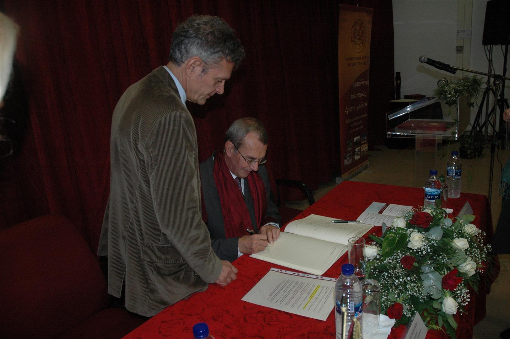 Η αναγόρευση του τιμωμένου πραγματοποιήθηκε από τον Πρύτανη του Πανεπιστημίου Κρήτης Καθηγητή Ευριπίδη Γ. Στεφάνου και έλαβε το ασημένιο μετάλλιο του Ιδρύματος με συγκίνηση.