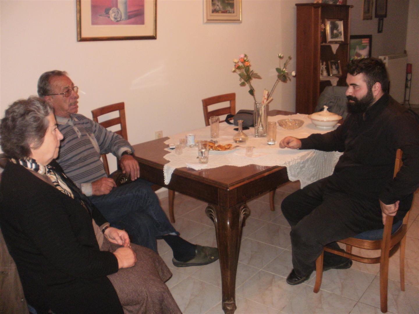 Φτάνουμε λοιπόν στα Χανιά και του λέω να με πάει στο πρακτορείο του ΦΑΙΣΤΟΣ. Πάω στις κοπελιές εκεί, ρωτώ που είναι ο σύντεκνος, δεν ήξεραν. Πάω κάτω κάτω στην πλατεία και βλέπω τον Κατσιά. Ανθρώπα ήταν, δύο μέτρα άντρας! «Καλώς τον! Καλώς τον!», μου λέει. Ήταν όλη μέρα εδώ στο χωριό και γύριζε στα καφενεία και με ήξερε.