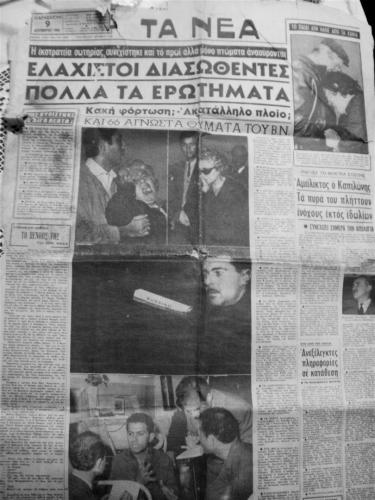 Σηκώνομαι εγώ με τα εσώρουχα, σηκώνεται κι ο Κωστής. Δύο άτομα ήμασταν σε τετράκλινη καμπίνα. Πετάγομαι στο διάδρομο. Κόσμος έτρεχε πάνω κάτω σε κατάσταση πανικού. Γυρίζω, κοιτάζω τα ρούχα μου και λέω, «να τα βάλω, να μην τα βάλω» και βλέπω τον Μπιρίκο να έχει βάλει το παντελόνι του και το ένα παπούτσι. «Άντε μπρε» του λέω και μου λέει «Κάτσε να ντυθώ». Τον αρπάζω και τον πετώ στο διάδρομο. Βγάνει και το ένα παπούτσι που’ χε βάλει και σπούμε κάτω. Δεν το καλοκάτεχα και το καράβι, αν και με βοήθησε το ό, τι είχαμε μπει την πρώτη φορά.