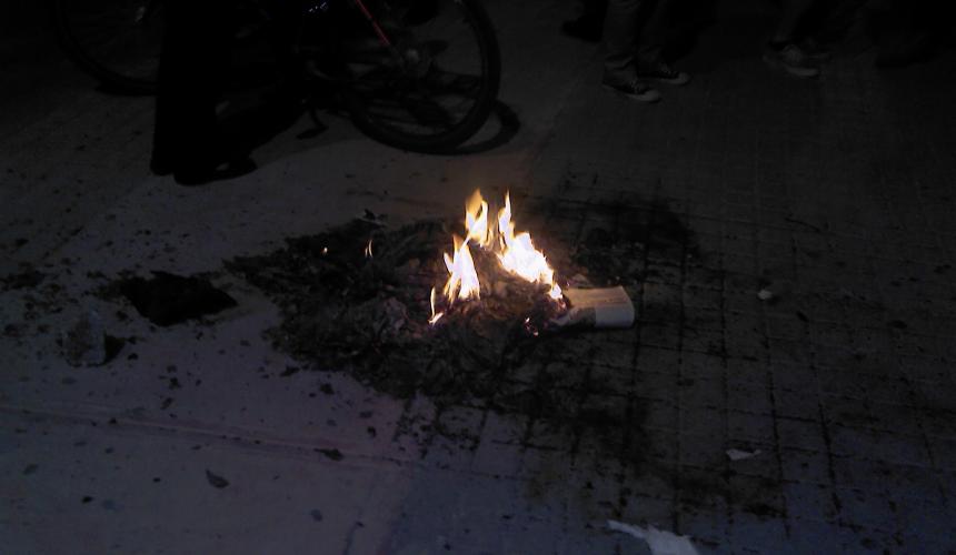 Ομάδα περίπου δέκα ατόμων της Χρυσής Αυγής είχε συγκεντρωθεί πριν από λίγη ώρα στην πλατεία των Τεσσάρων Μαρτύρων και μοίραζε εφημερίδες του κόμματος. Αυτό προκάλεσε την αντίδραση των αντιφασιστών οι οποίοι είχαν πληροφορηθεί το γεγονός και έσπευσαν άμεσα στην περιοχή, γύρω στα πενήντα άτομα, για να αποτρέψουν τη διανομή της εφημερίδας. Σημειώθηκε συμπλοκή μεταξύ των δύο ομάδων η οποία και έληξε με τη διακριτική παρέμβαση της Αστυνομίας. Το υλικό της Χρυσής Αυγής αφαιρέθηκε από την αντιφασιστική ομάδα και κάηκε επιδεικτικά στο πεζοδρόμιο.
