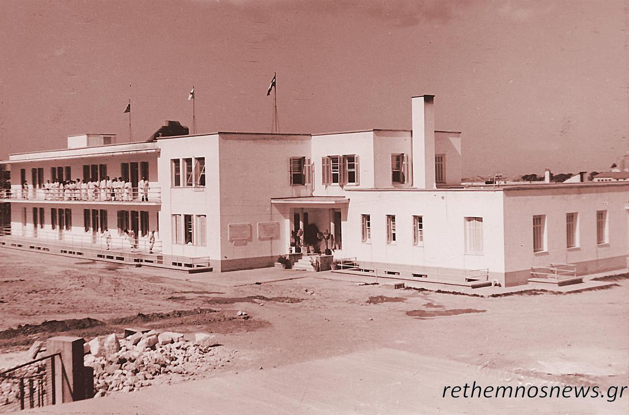«Η Ελληνοαμερικανική Περίθαλψη είχε προγραμματίσει να κατασκευάσει Νοσοκομείο στην πόλη του Αγρινίου. Όμως, το Αγρίνιο δεν διέθετε οικόπεδο κι έτσι ακυρώθηκε η εκεί κατασκευή και άρχισε να ψάχνει άλλη ελληνική πόλη που να διαθέτει κατάλληλο οικόπεδο γι’ αυτή τη χρήση Το Ρέθυμνο, τη χρονική εκείνη στιγμή δεν διέθετε τέτοιο χώρο. Την υπαναχώρηση του Δήμου Αγρινίου πληροφορήθηκε ο τότε Αντιπρόεδρος της ελληνικής Κυβέρνησης Σοφοκλής Βενιζέλος και κατόρθωσε να πείσει τους αρμοδίους να στρέψουν το βλέμμα τους προς το Ρέθυμνο, υπογράφοντας μαζί τους σύμβαση ανέγερσης Νοσοκομείου, ψευδόμενος (!) ότι το Ρέθυμνο διαθέτει τον κατάλληλο χώρο, αυτό του παλιού Νοσοκομείου, που είχε όμως παραχωρηθεί για την εγκατάσταση της Σχολής Χωροφυλακής.