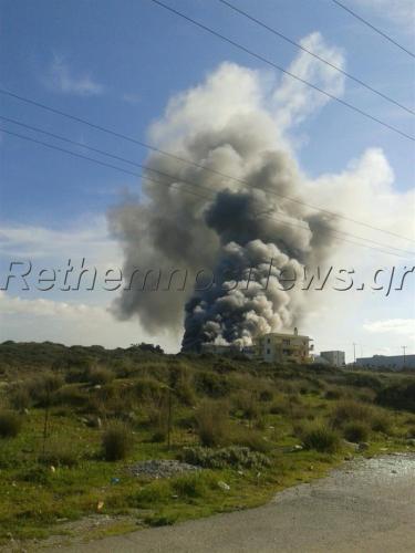 Πυρκαγιά βρίσκεται σε εξέλιξη αυτή την ώρα στο εργοστάσιο της Creta Farms στο Ρέθυμνο, η οποία ξέσπασε από άγνωστη μέχρι στιγμής αιτία, σε αποθήκες της εταιρίας. Στο σημείο ήδη έχουν φτάσει 4 οχήματα της Πυροσβεστικής Υπηρεσίας, 2 από το Ρέθυμνο και 2 από το Πέραμα Μυλοποτάμου, με τους πυροσβέστες να δίνουν μάχη προκειμένου να θέσουν υπό έλεγχο τη μεγάλη φωτιά.