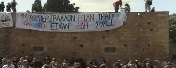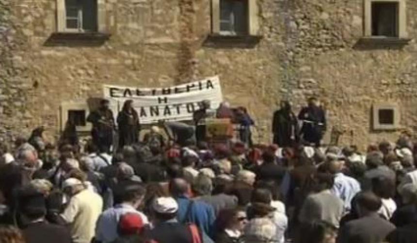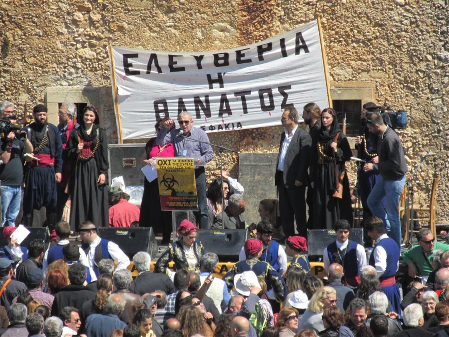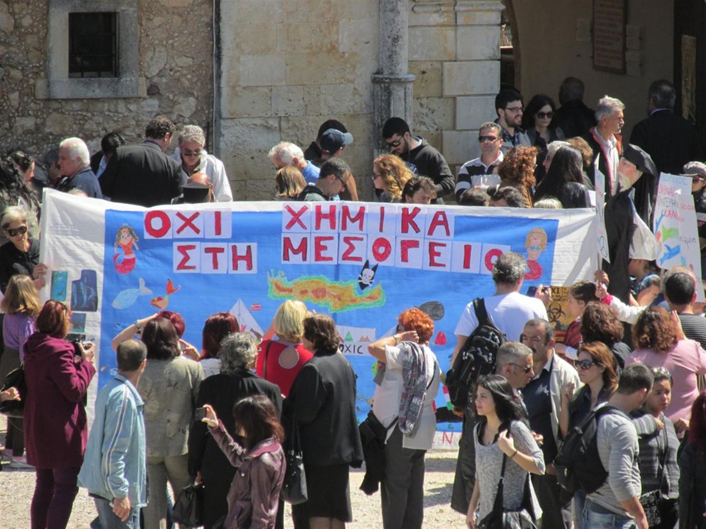 Χιλιάδες κόσμου βρέθηκαν από κάθε γωνιά της Κρήτης στο Αρκάδι προκειμένου να διαδηλώσουν ενάντια στην καταστροφή των χημικών όπλων στη Μεσόγειο.