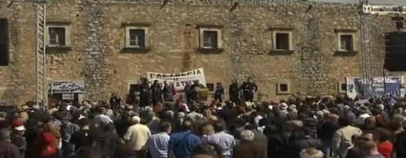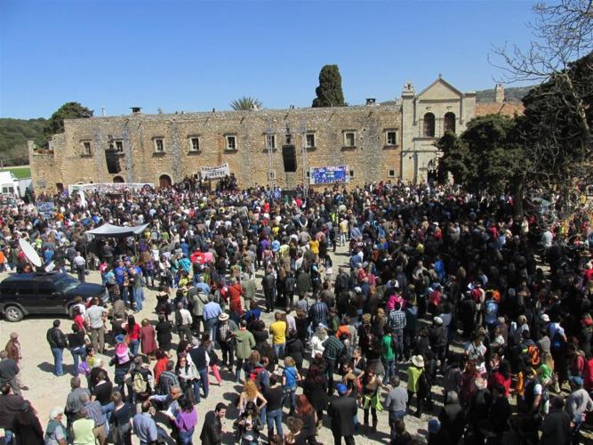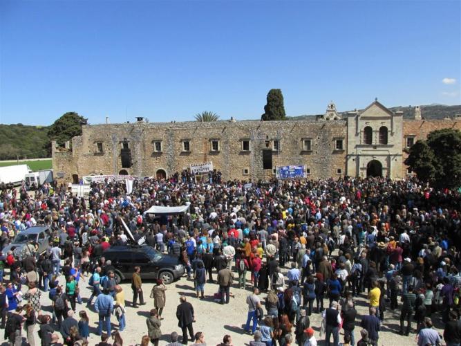 Την φωνή τους ένωσαν σήμερα περισσότεροι από εξι χιλιάδες Κρητικοί που συγκεντρώθηκαν στην ιστορική Ι. Μονή Αρκαδίου προκειμένου να διαμαρτυρηθούν ενάντια στην καταστροφή των χημικών όπλων της Σύριας στη Μεσόγειο.