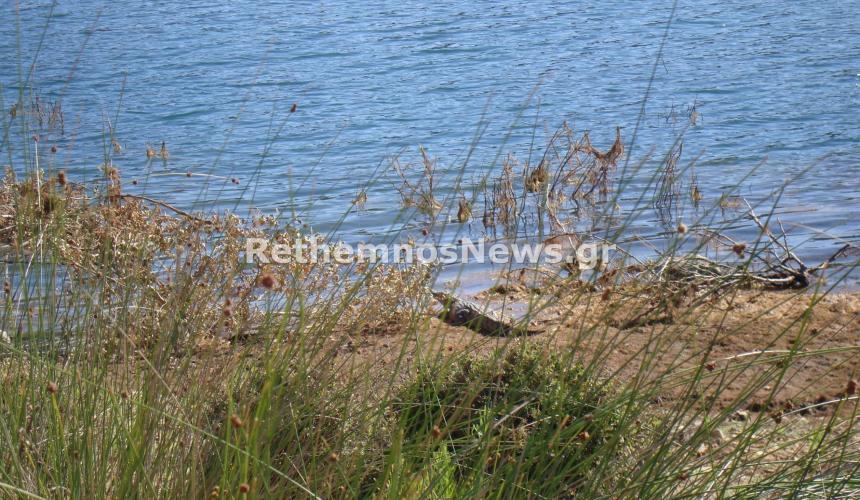 Ο κροκόδειλος του Αμαρίου φαίνεται στην πρώτη φωτογραφία να απολαμβάνει τον κρητικό ήλιο ήσυχος, ενώ στη δεύτερη φωτογραφία βλέπουμε μία από τις καμουφλαρισμένες παγίδες, που προς το παρόν τουλάχιστον, δεν έχουν πετύχει το σκοπό τους