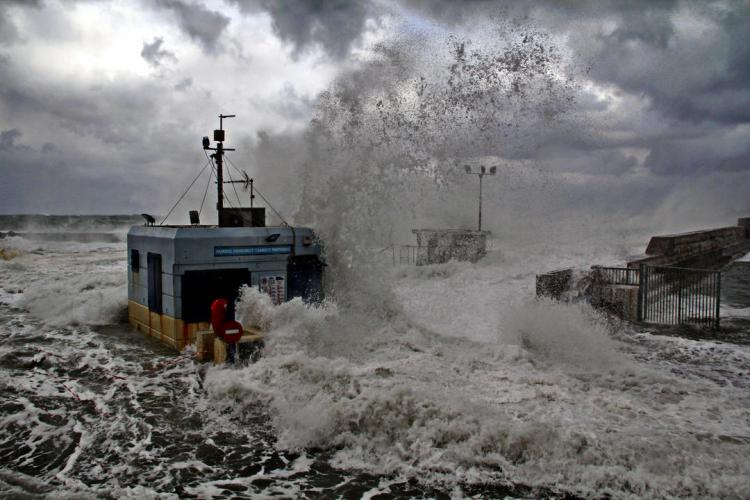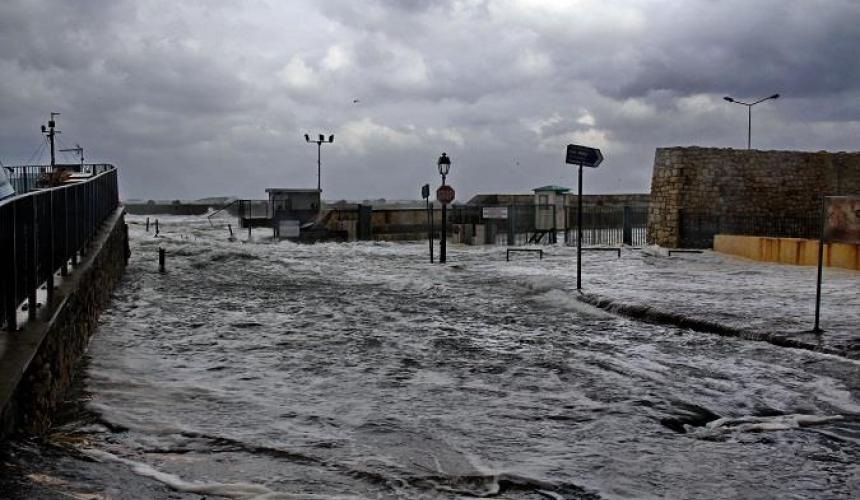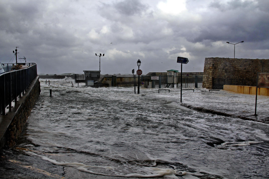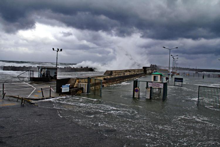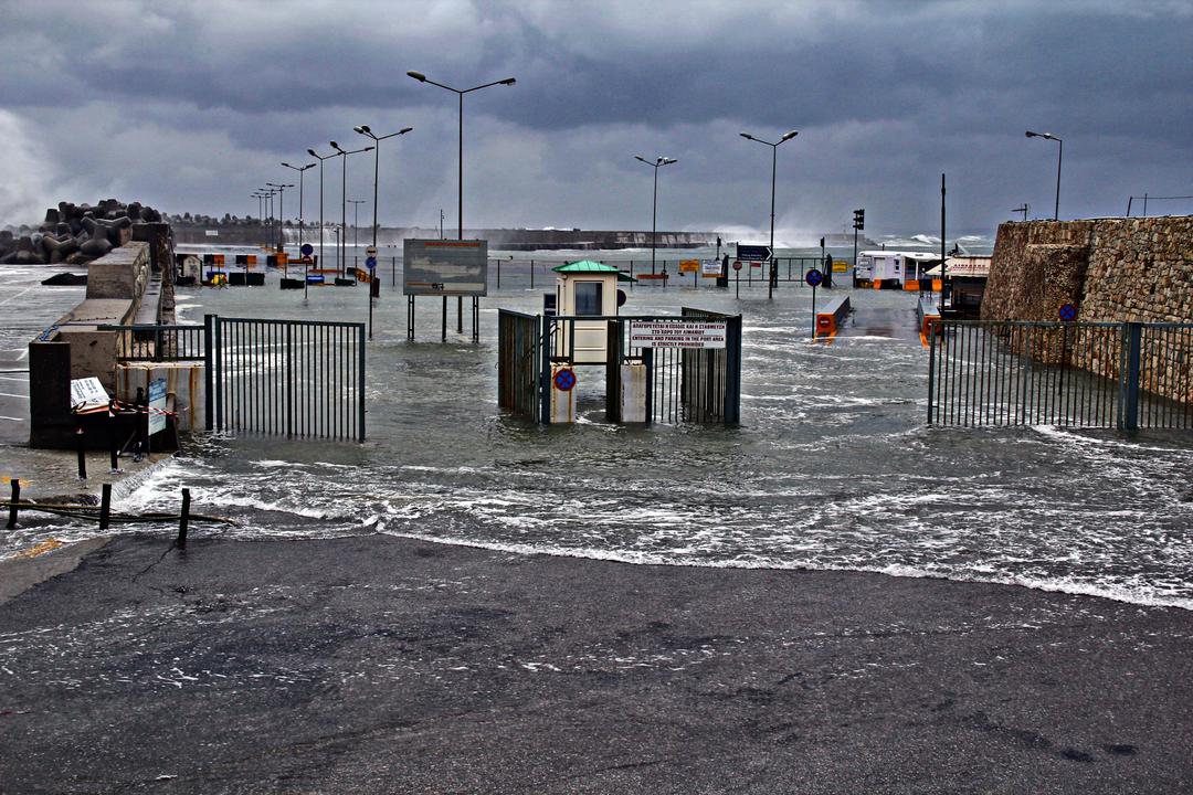 H θάλασσα βγήκε στη στεριά και τα τεράστια κύματα «χτυπούν» ασταμάτητα το λιμάνι της πόλης.