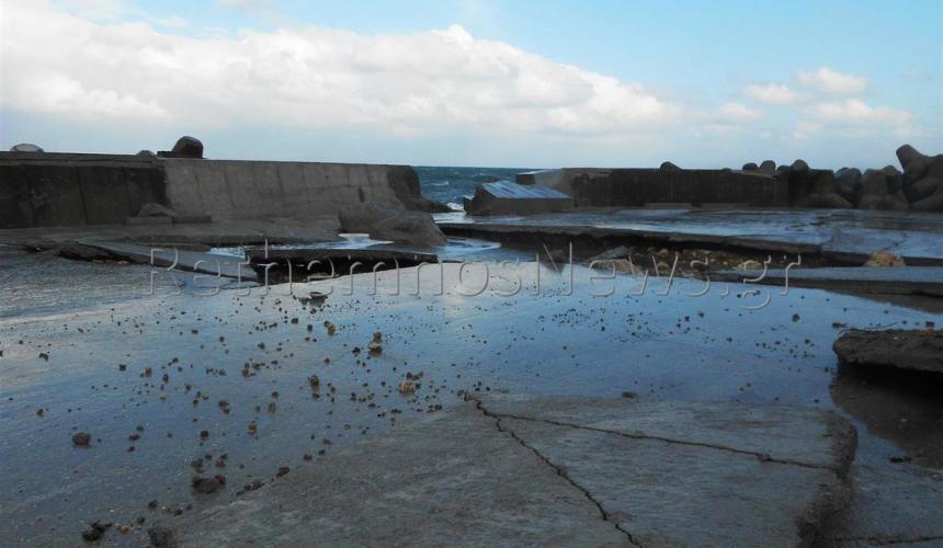 Για το θέμα αυτό η πρόεδρος του Λιμενικού Ταμείου κ. Ρένα Κουτσαλεδάκη, ανέφερε μεταξύ άλλων: «Τα καιρικά φαινόμενα που επικρατούσαν σε όλη την Κρήτη αλλά και στο Ρέθυμνο, ήταν ακραία. Οι άνεμοι ήταν εντάσεως 9-10 Μποφώρ και ο κυματισμός ήταν έντονος, με αποτέλεσμα το κύμα να υπερπηδάει το τοιχίο του πάρκινγκ αλλά και όλης της προβλήτας της κρουαζιέρας προκαλώντας καταστροφές.Λόγω των ισχυρών ανέμων και λόγω του βάθους στο σημείου (8μέτρα), ένα τμήμα του τοιχίου, όχι της παλιάς μελέτης αλλά σε διπλανό τμήμα, καταστράφηκε με αποτέλεσμα όλα τα υπολείμματα του τοιχίου να φτάσουν μέχρι και την πόρτα του Λιμεναρχείου. Όλος ο δρόμος καλύφθηκε με πέτρες και φερτά υλικά και τα νερά έφτασαν και μέχρι την παλιά πόλη».