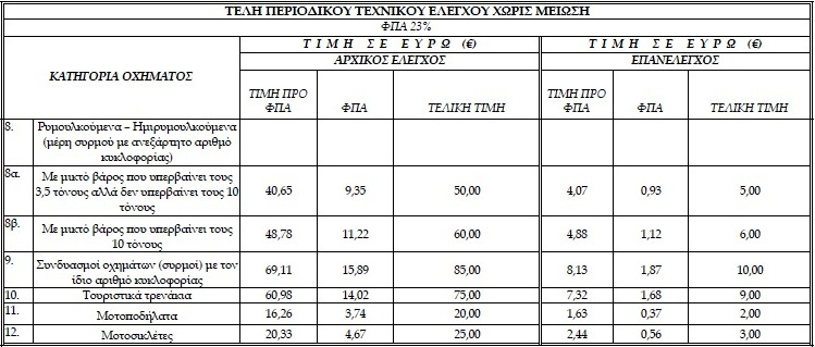 Μέχρι σήμερα λόγω του έντονου ανταγωνισμού που υπάρχει ειδικά στην Κρήτη, οι τιμές είχαν κρατηθεί σε χαμηλά επίπεδα. Ενδεικτικά αναφέρουμε ότι ο έλεγχος για τα αυτοκίνητα και τις μοτοσικλέτες στο Ηράκλειο κοστίζει 25 και 10 ευρώ αντίστοιχα.