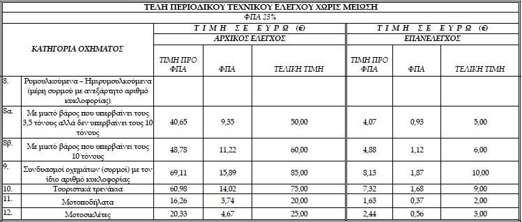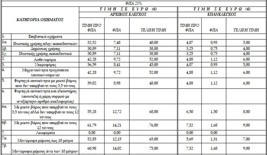 Ο τιμοκατάλογος που θα ισχύει πλέον τόσο για τα δημόσια όσο και για τα ιδιωτικά ΚΤΕΟ: