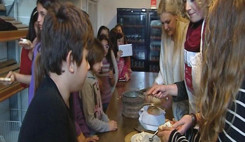 Στη συνέχεια οι μαθητές έφτιαξαν αθότυρο και είδαν πως παρασκευάζεται ώστε να έρθουν πιο κοντά στα οφέλη της κρητικής διατροφής.