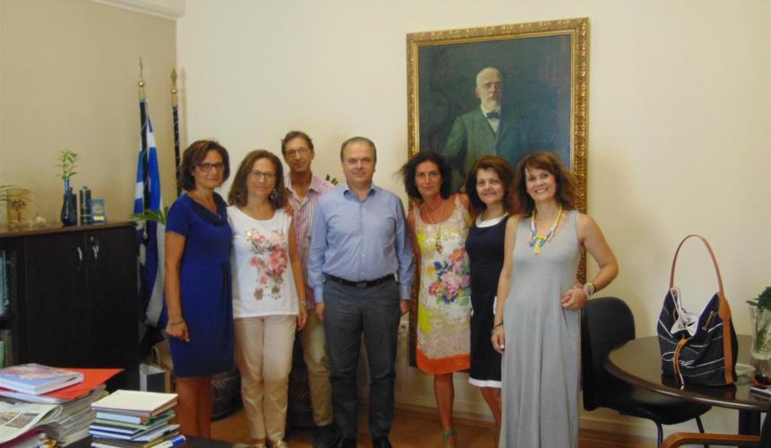 Αντιπροσωπεία από εκπαιδευτικούς σχολείου της ιταλικής πόλης Γκαλατίνα υποδέχθηκε σήμερα ο Δήμαρχος Ρεθύμνης κ. Γιώργης Μαρινάκης στο Δημαρχείο. Τις 3 Ιταλίδες εκπαιδευτικούς συνόδευσαν ο Δ/ντής του Πειραματικού Γυμνασίου Π.Κ. κ. Μαρκαντές Γιάννης με δύο καθηγήτριες του Πειραματικού τις κες Δρανδάκη Αθηνά και Σκανδαλάκη Στέλλα και μαζί είχαν μια ενδιαφέρουσα συνεργασία με το Δήμαρχο, με αντικείμενο την ενίσχυση και τη διασφάλιση της συνεχούς, εποικοδομητικής συνεργασίας των δύο σχολείων, στο πλαίσιο της αδελφοποίησης που έχουν συνυπογράψει.