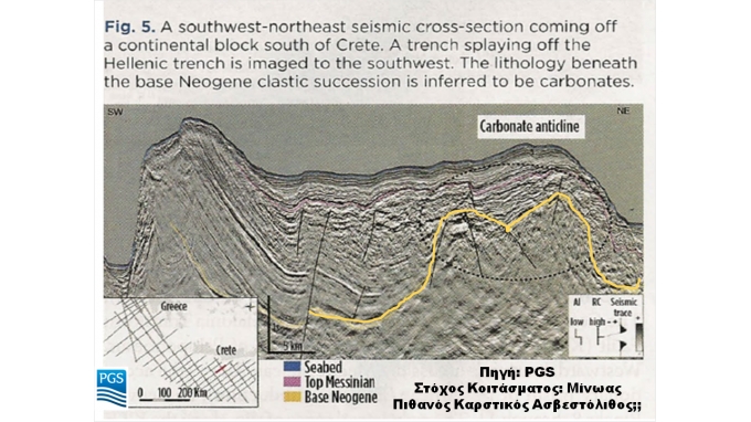Διότι στα messinian lagoons θα βρεθούν κι άλλα κοιτάσματα του τύπου Ζορ. Το κοίτασμα αυτό δείχνει ότι υπάρχουν κι άλλα αποθέματα, που δεν είχαν υπολογιστεί, γιατί ανήκαν σε άλλο μοντέλο. Τώρα με αυτήν την ανακάλυψη έχουμε νέες προοπτικές κι όσον αφορά στην Ελλάδα μας δείχνουν με ξεκάθαρο τρόπο την περιοχή Νότιας της Κρήτης. Μάλιστα ακόμα και στο χάρτη που αναδεικνύεται το κοίτασμα Μίνωας, βλέπουμε ότι υπάρχει πιθανός καρστικός ασβεστόλιθος.