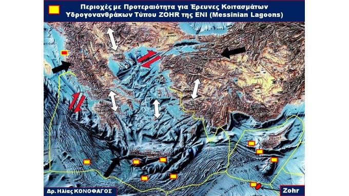 Η ανακάλυψη του υπεργιγαντιαίου κοιτάσματος Ζορ από την ENI στην αιγυπτιακή ΑΟΖ δεν είναι μόνο εμπορική, αλλά και επιστημονική, με την έννοια ότι μας διδάσκει και νέα ανοίγματα, αφού τώρα βλέπουμε μετά τη γεώτρηση, που έγινε στα 4.131 μέτρα και βρήκε το φυσικό αέριο, έχουμε και πετρέλαιο στα 5.000 μέτρα. Αλλά με την ανακάλυψη αυτή έχουμε κι άλλες επεκτάσεις, διότι έγινε μέσα σε πλαίσιο καρστικών ασβεστόλιθων και όχι μόνο ψαμμιτών.