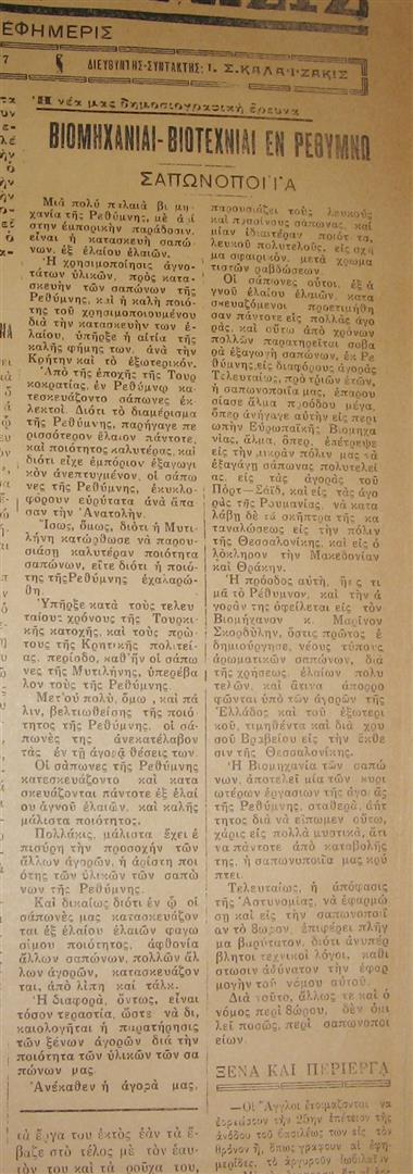 Καταλήγει δε το σχόλιο, ότι «εάν η πόλις καυχάται δια την ηλεκτρικήν εταιρίαν της που εφώτισεν απλέτως αυτήν, δια το εργοστάσιον ελαιουργίας «ΒΙΟ» πρέπει να καυχάται ολόκληρος ο νομός Ρεθύμνης».