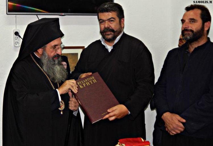 Ολοκληρώνοντας να αναφέρουμε ότι ο Μητροπολίτης Ρεθύμνης κ.κ Ευγένιος έδωσε σε κάθε ένα που βρέθηκε στην εκδήλωση από ένα βιβλίο με την Ιστορία της εκκλησίας της Κρήτης εδώ και 2000 χρόνια. Παράλληλα έδωσε και ένα βιβλίο με την ιστορία ως δώρο και για την ονομαστική εορτή του π.Ανδρέα Κεφαλογιάννη. Ένα υπέροχο υφαντό ήταν το δώρο του π.Ανδρέα προς την εκλεκτή προσκεκλημένη κα Μαρία Λιονή.